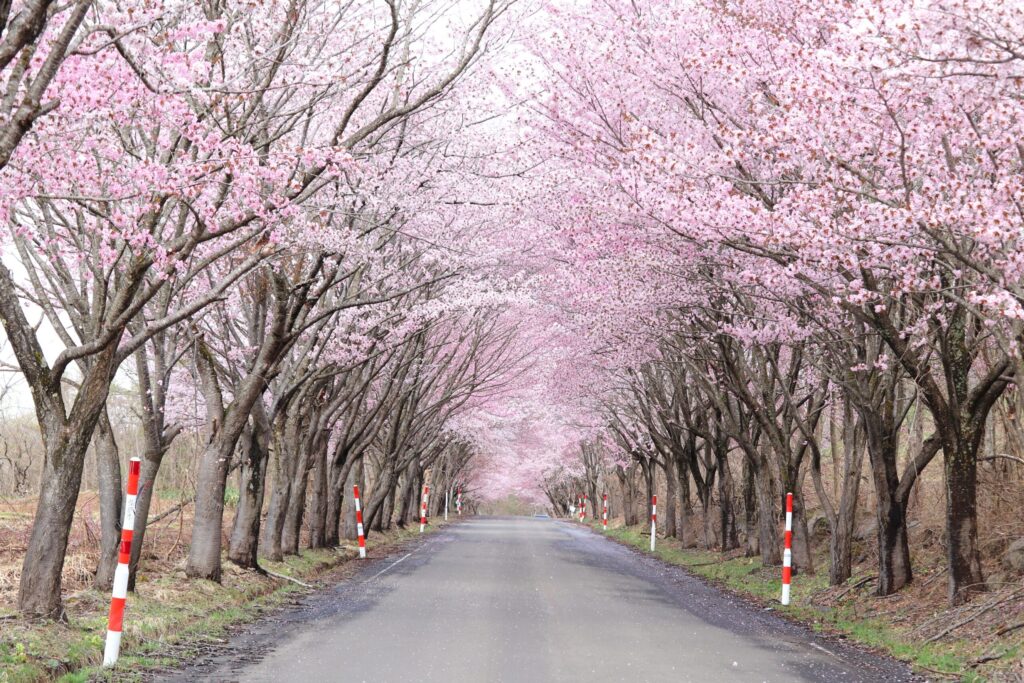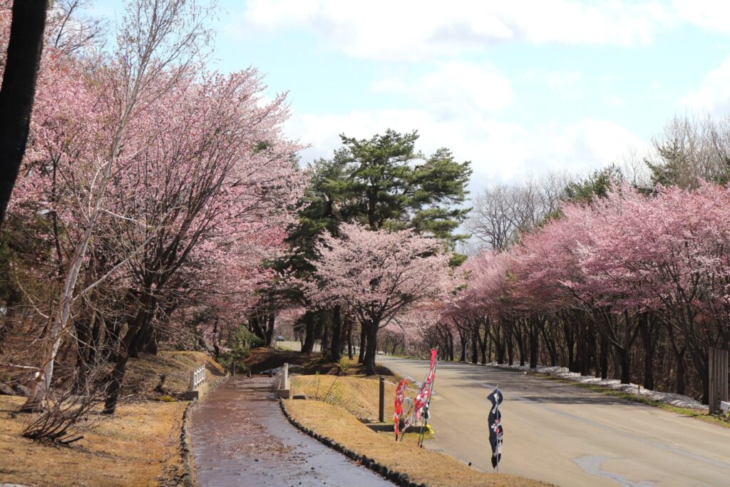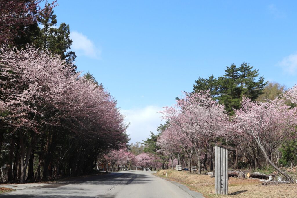 県道3号線沿いも、岩木山総合公園のあたりまで開花しました。