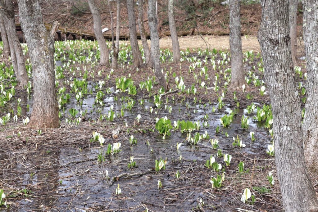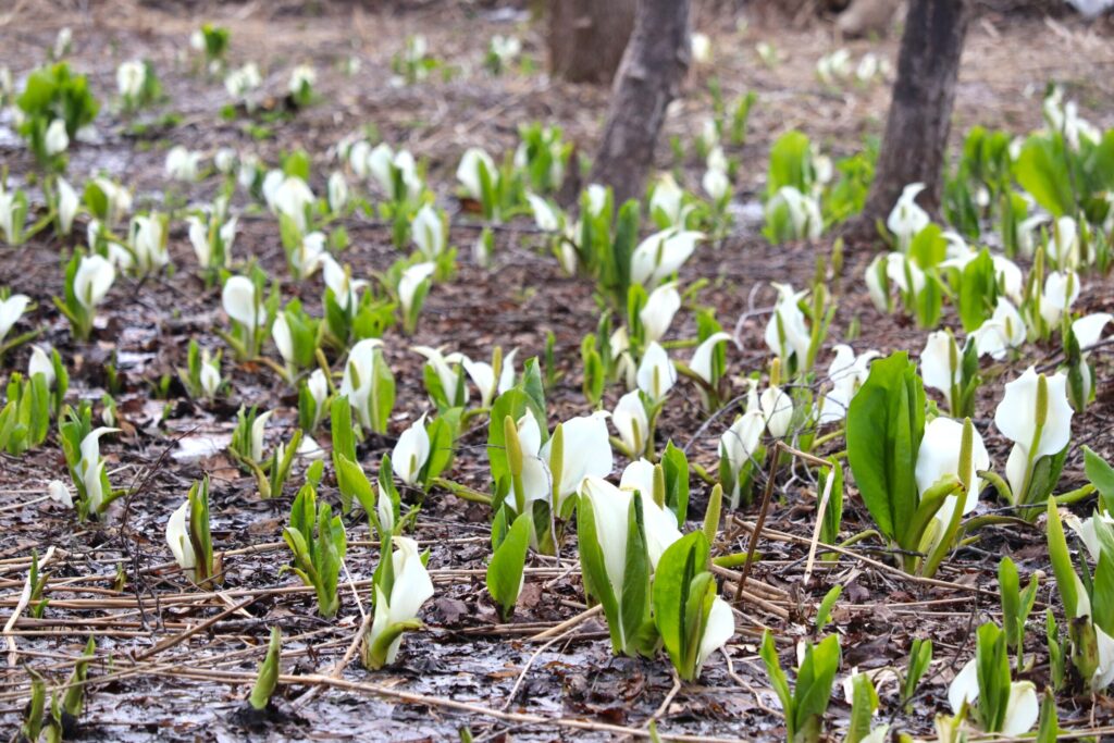常盤野農村公園のミズバショウは引き続ききれいな花が咲いています。遊歩道は滑る部分やぬかるみがあるので注意ください。