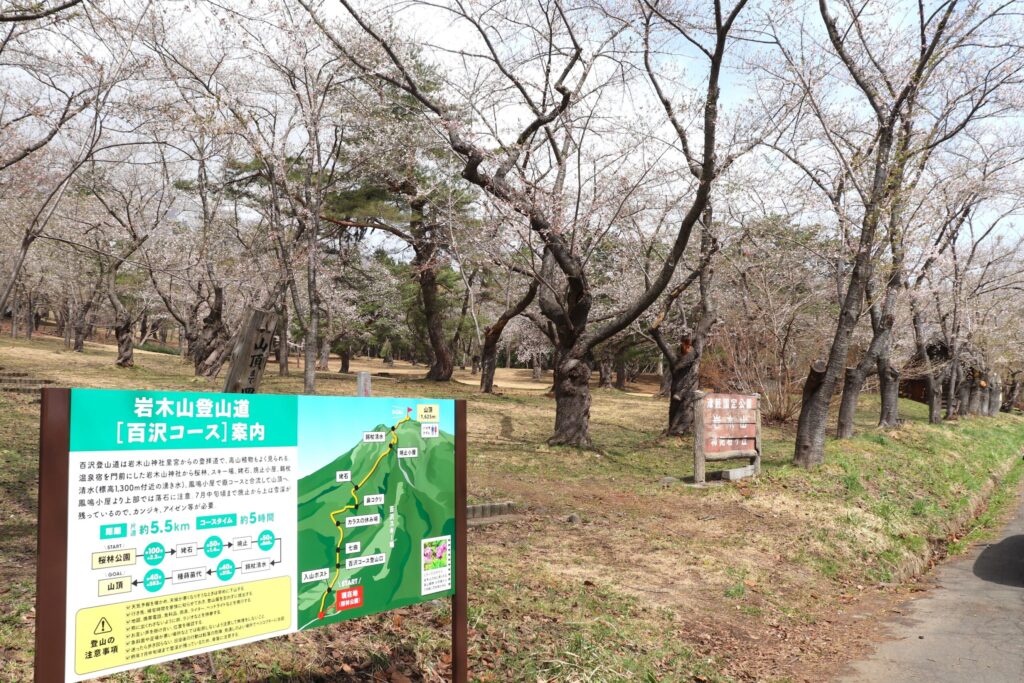 路線バス(弘南バス)でお越しの場合は、「岩木山総合公園前」バス停で降りて、20分ほど徒歩で坂道を下ると桜のトンネルの方に行くことができます。