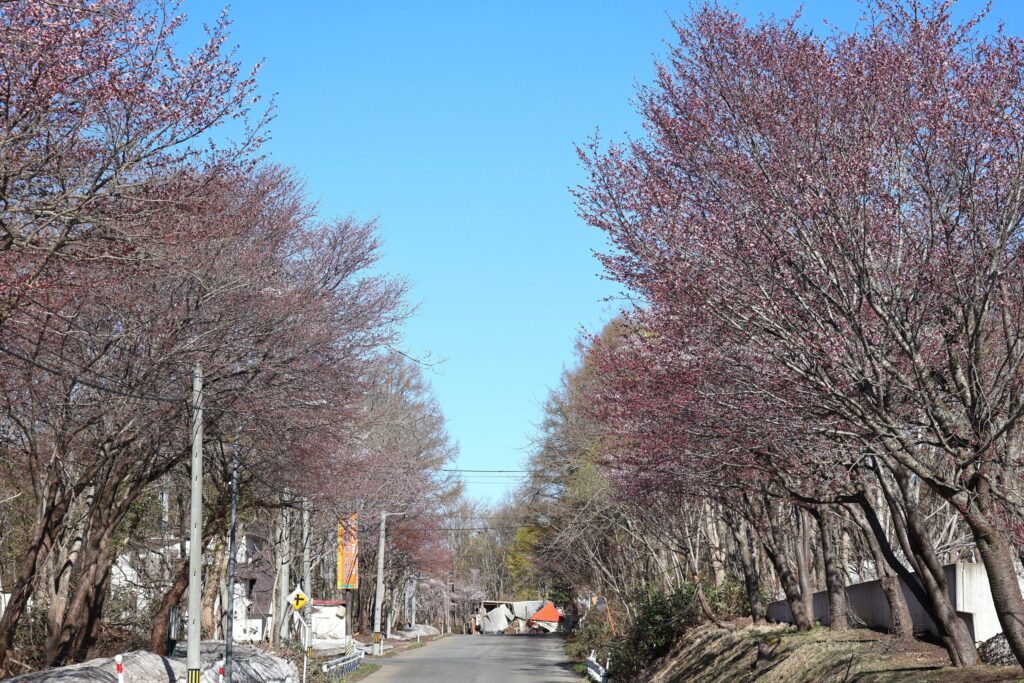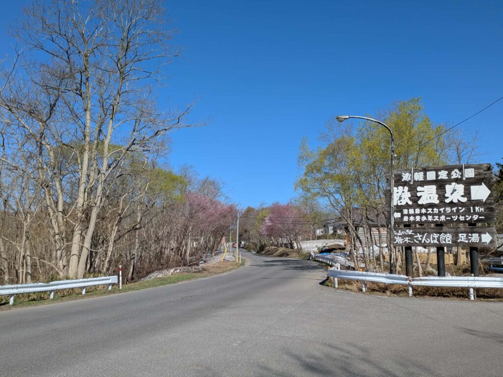 県道3号線沿いは、嶽温泉のあたりまで開花しました。天気もよく、ドライブしながら桜並木を見るのに最高のロケーションです。
