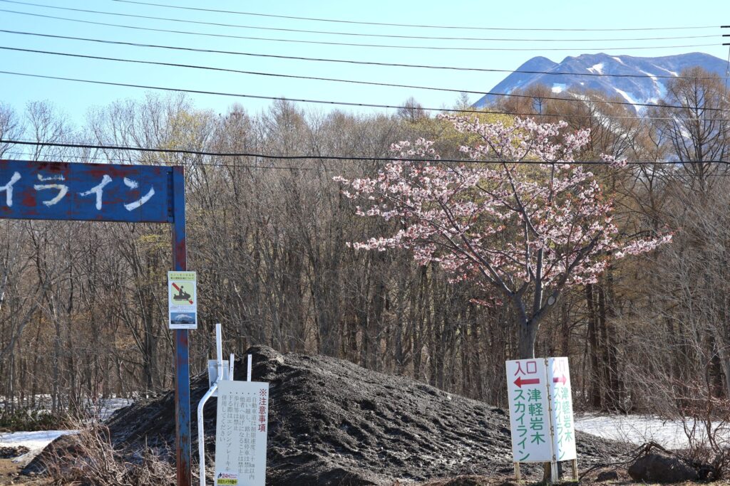 岩木スカイライン向かいの桜トンネルはまだ3~4分咲き程度です。あと少しで見ごろを迎えそうです。開通したばかりの岩木スカイラインのゲートにも桜が咲いています。